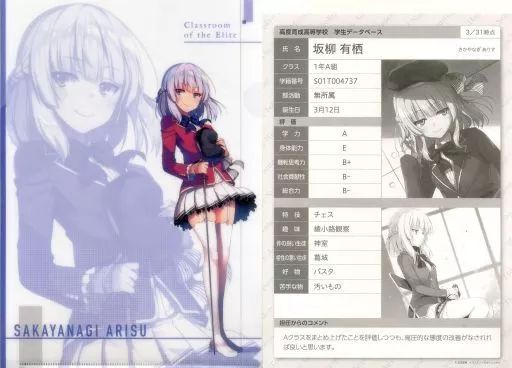 - キャラクターグッズ > クリアファイル > 全7種 ようこそ実力至上主義の教室 生徒データベーストレーディングクリアファイル 全7種 ようこそ実力至上主義の教室 生徒データベーストレーディング