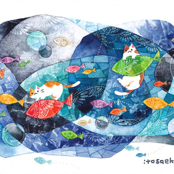 | メーカー名 | b25a23e9258b6e | ブランド名 | 絵画 絵画「雨上がりの虹の魚とネコたち」 |