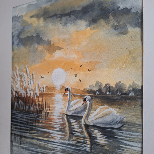- 美術品・アンティーク・コレクション > 絵画 > 真作•水彩画で独特な表現2作品での出品 水彩画 夕陽に染まる白鳥 絵画 makochin 通販 19329121|Creema(クリーマ)