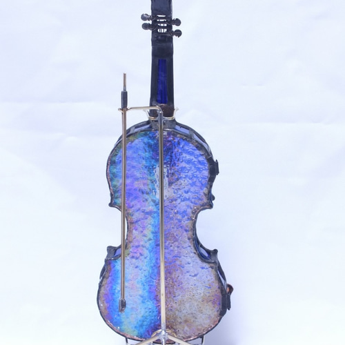 - 美術品・アンティーク・コレクション > 工芸品 > アメリカ ステンドグラス Violinヴァイオリン グラスマスターズ社アールデコ 青いバイオリン new2;ステンドグラス作品 LEDを組み込んだ手作り