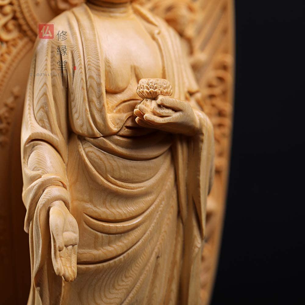 【修縁堂】木彫仏像 阿弥陀如来立像 阿弥陀仏 彫刻 一刀彫 天然木檜材 修縁堂】木彫り 仏像 阿弥陀如来立像 阿弥陀仏 精密彫刻 一刀彫 天然木