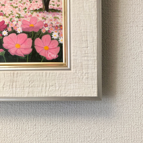 アクリル画 原画 「コスモスのフィールド05」額縁付 F4サイズ キャンバス コスモスのフィールド05」アクリル画 額縁付 原画 キャンバス F4サイズ