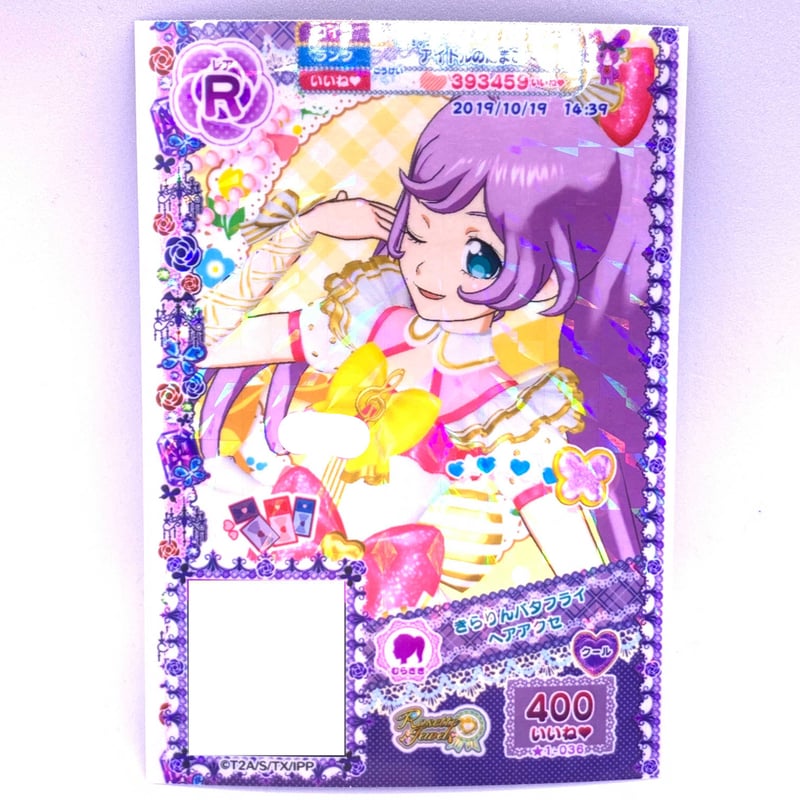 | 商品の特徴 | プリパラ きらりんバタフライヘアアクセ らぁら | Pri☆card。プリパラ アクセコレクション|商品情報|タカラトミーアーツ。fit=scale-down,w=1200。プリパラ チャームコレクション|商品情報|タカラトミーアーツ。フレッシュSoLaMiチームCヘアアクセらぁら、みれいのデザインです!マイマネがオレンジハムスターであればらぁらのコーデ一式も別で出品しています!ヘアアクセ単品…333円ヘアアクセセット …555円コーデ一式 …+222円(↑オレンジハムスターのみです) | ||