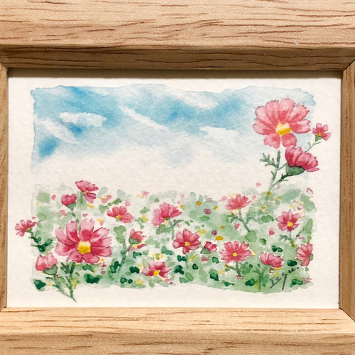 | メーカー | 作家物【コスモス水彩画】瑞々しい摘みたてのコスモス♪作家物、額装付き |
