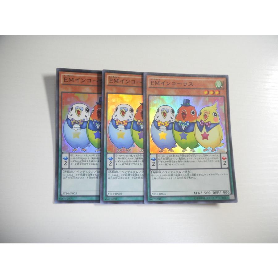 | 商品の特徴 | Emインコーラス3枚セット。Emインコーラス3枚セット。Emインコーラス3枚セット。楽天市場】遊戯王 EMインコーラス スーパーレア ST16-JP005 風属性。値段言ってください | ||