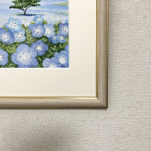 | メーカー | 透明水彩画 原画 「空と海とネモフィラ」額縁付 F4サイズ 風景画 透明水彩画 |