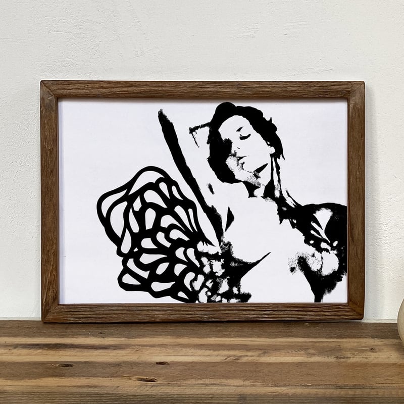 ハンドペイント 新品未使用 黒 風景画 モダンアート 漆塗り 飾り 額縁 モノクロアート Venus」A4 モノトーン ポスター & 木製 アンティーク