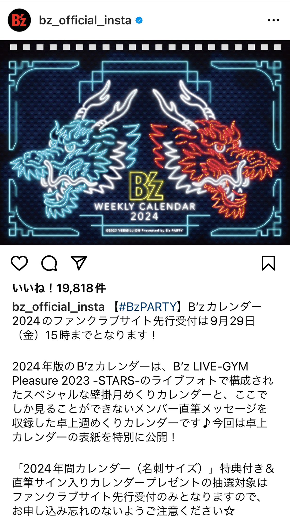 | メーカー | B'z ウィークリーカレンダー |