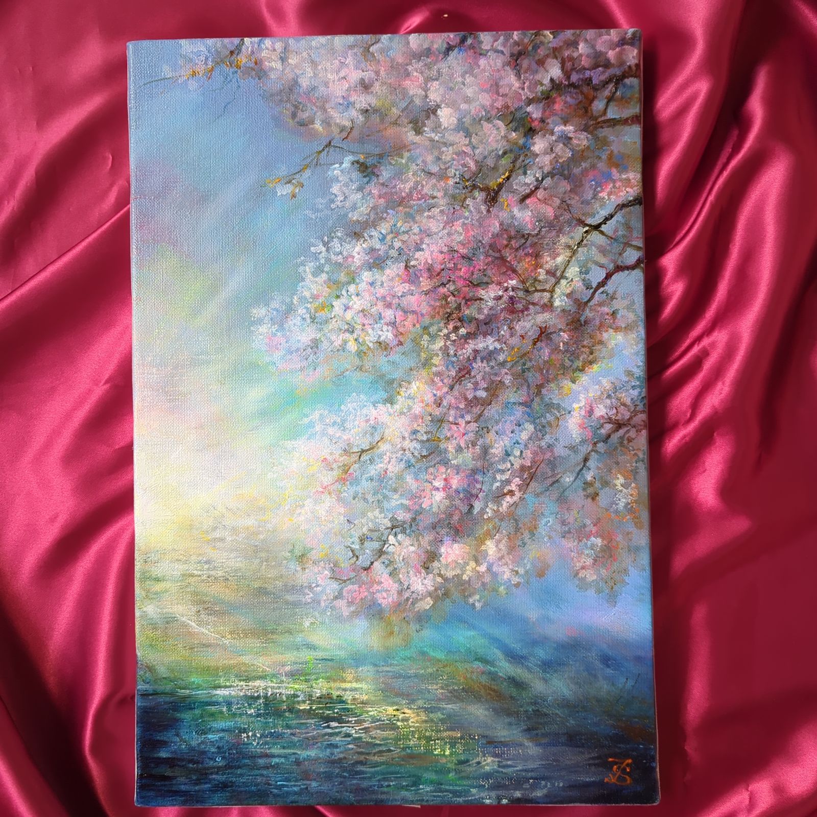 | メーカー名 | 6f15ee | ブランド名 | 風景画 画家painterTMKの絵画 インテリア 画家本人出品 油絵風景画 風景画「光彩の桜」 |